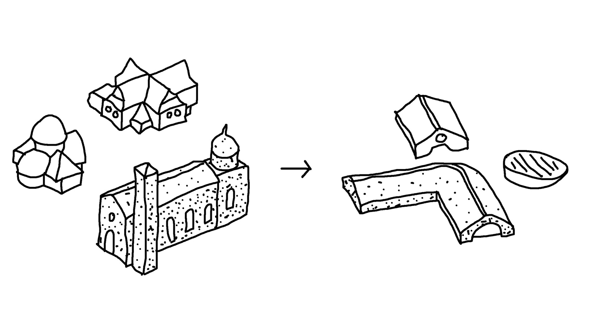the theme of transforming the formal elements of sacred architecture into a new form