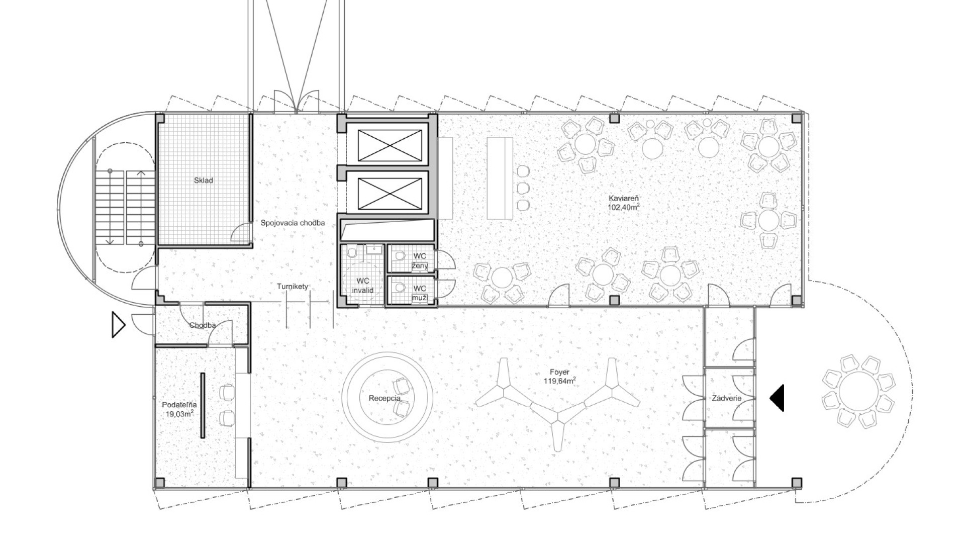 Vertical spaces, staircase, meeting rooms