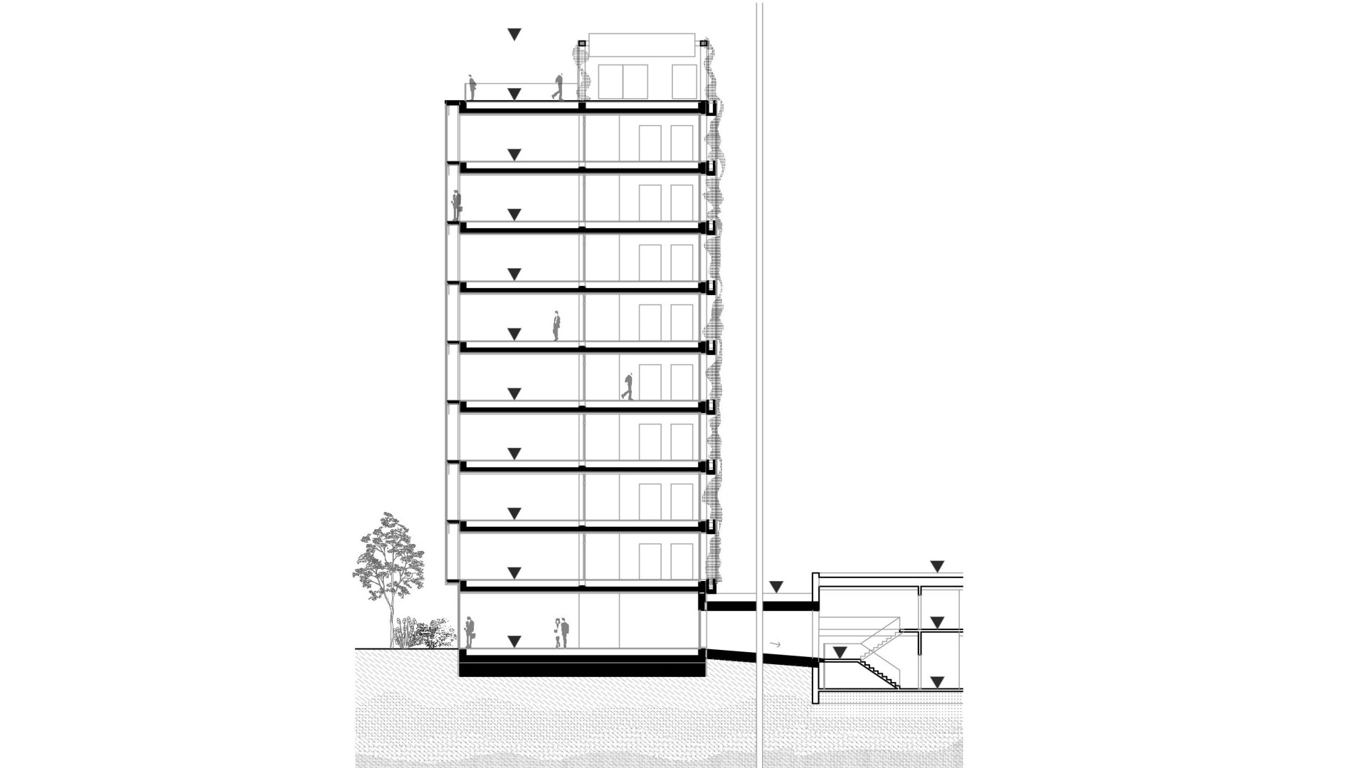 Sketch of a corridor on a standard floor