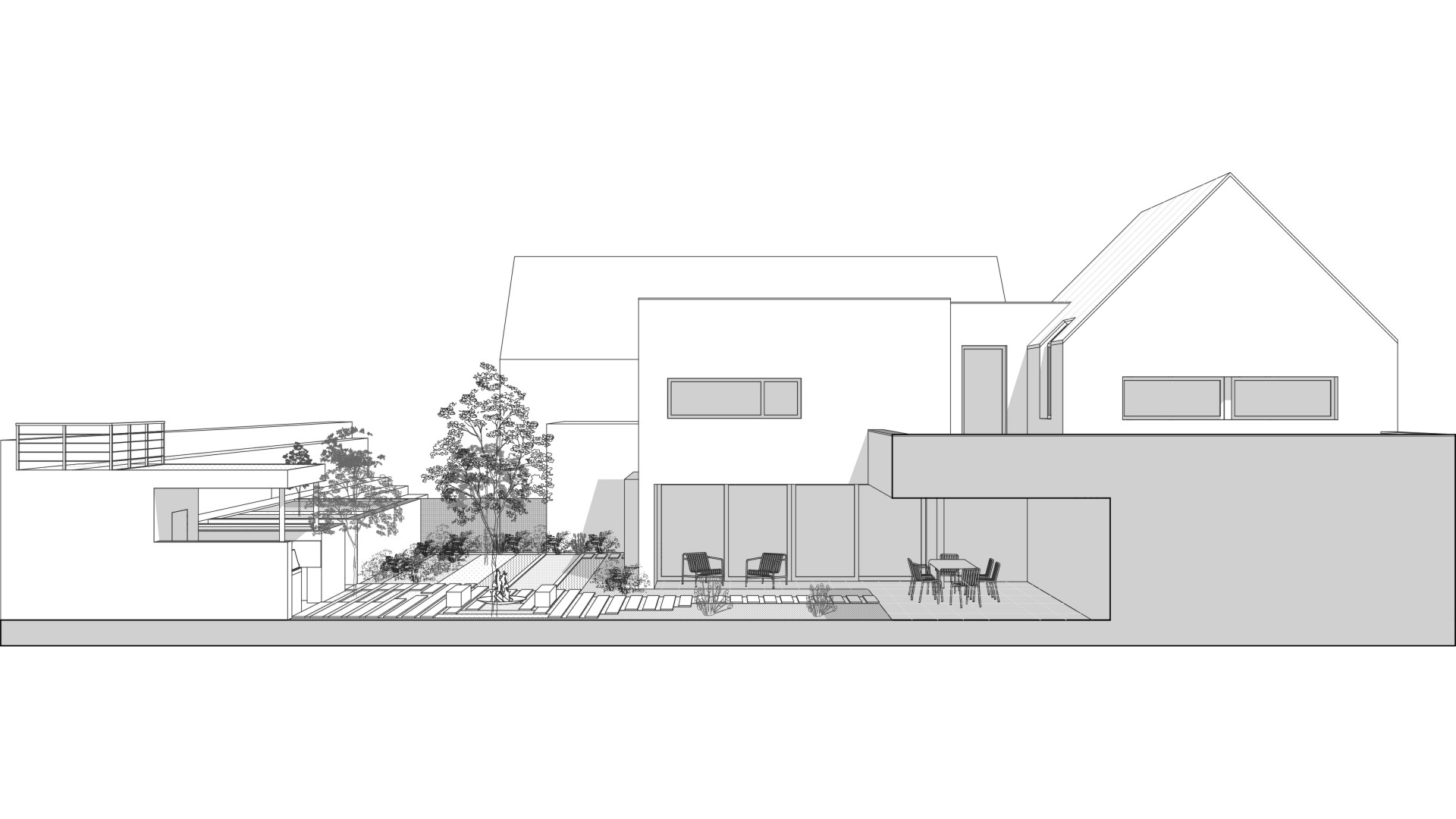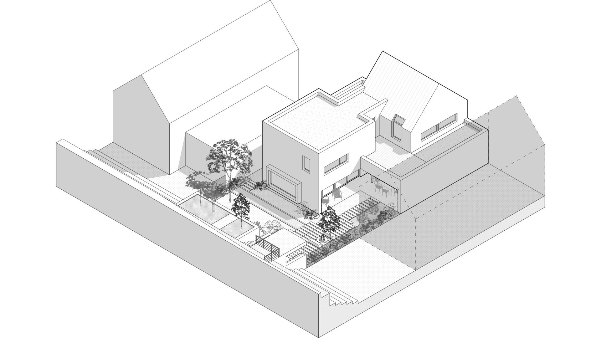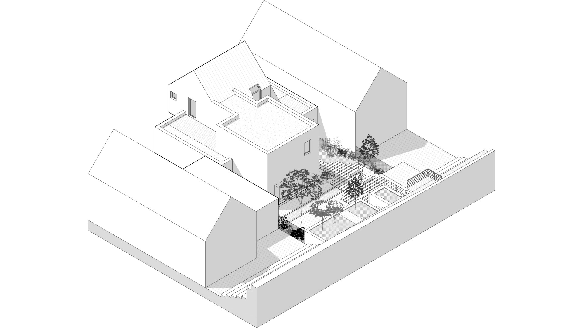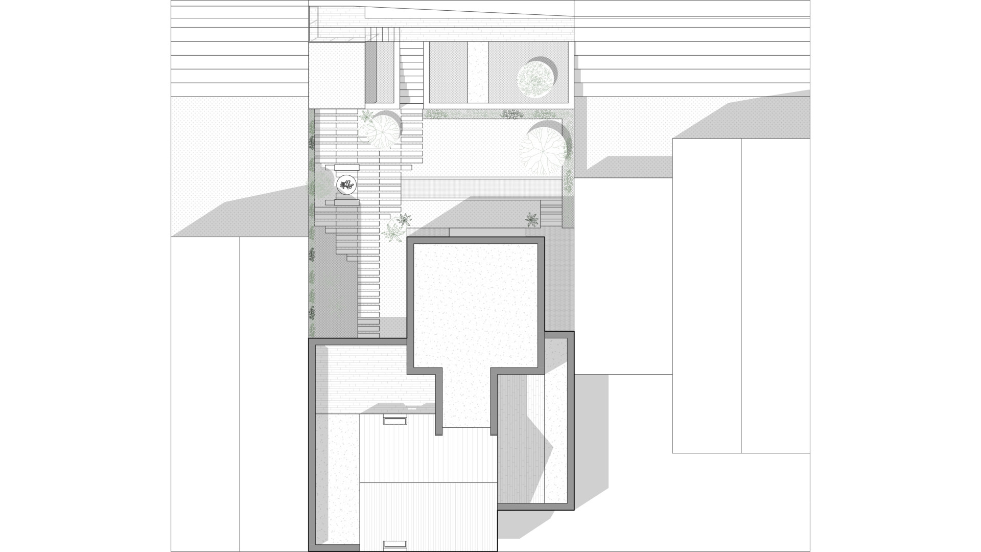 The placement of elements respects the existing context, the scale of the site, and the natural spatial relationships.